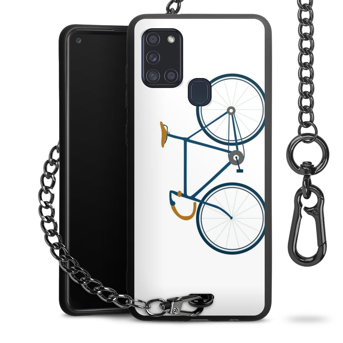 - Mattschwarze Handyhülle mit Metallkette