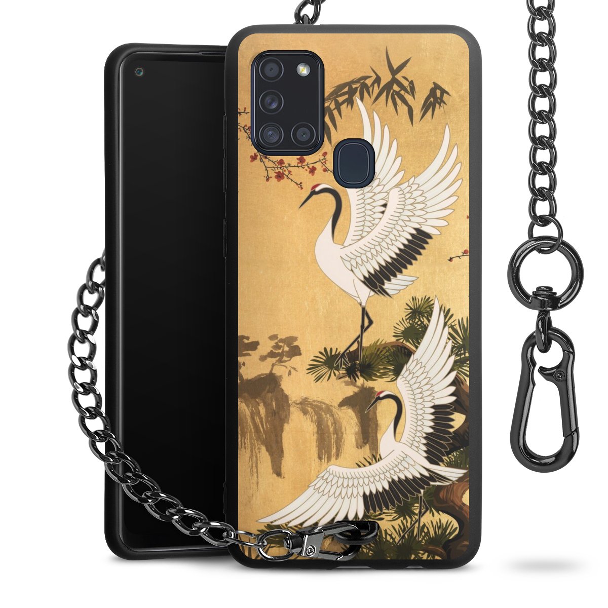 • Mattschwarze Handyhülle mit Metallkette