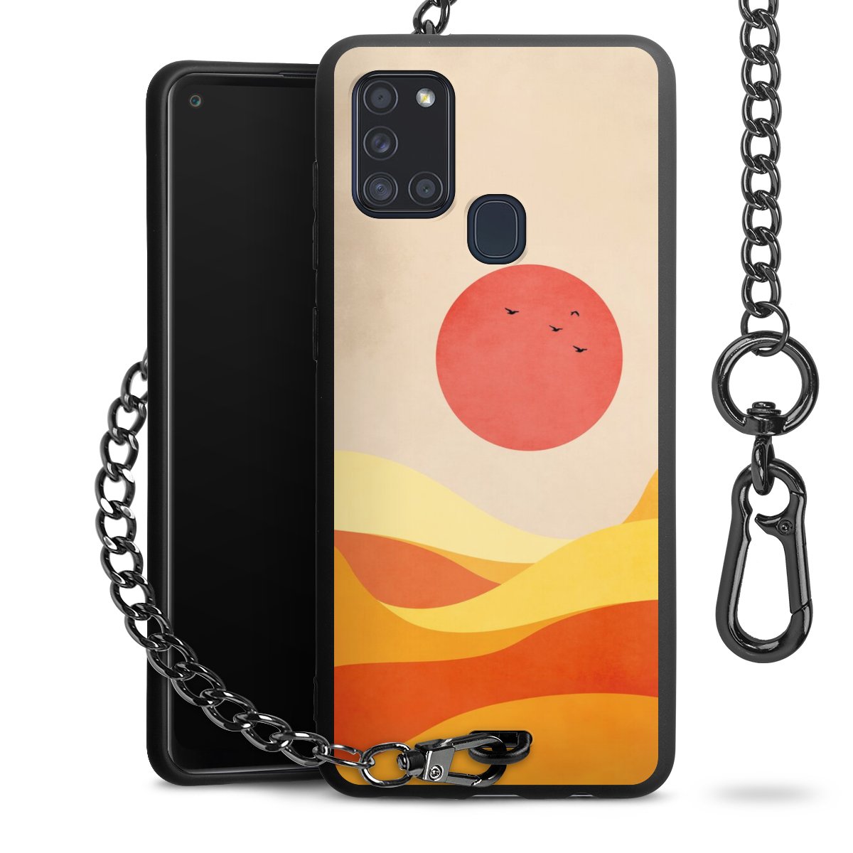 • Mattschwarze Handyhülle mit Metallkette