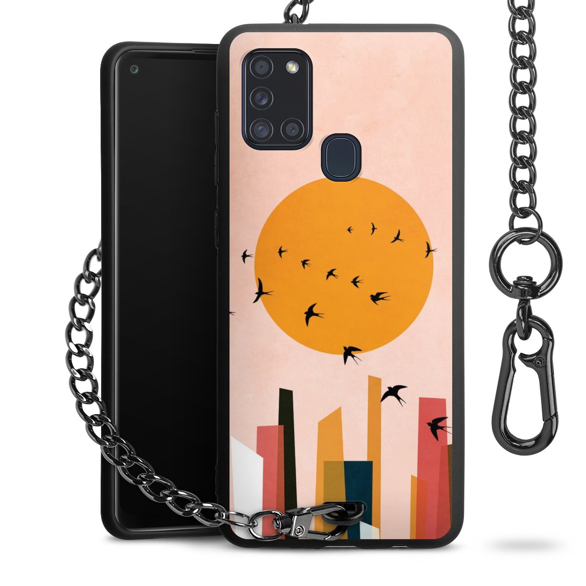 • Mattschwarze Handyhülle mit Metallkette