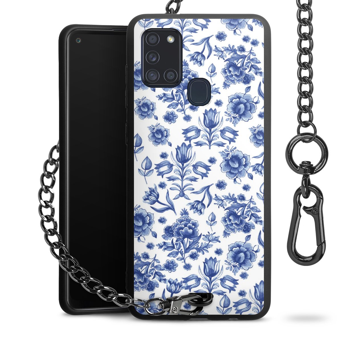 - Mattschwarze Handyhülle mit Metallkette