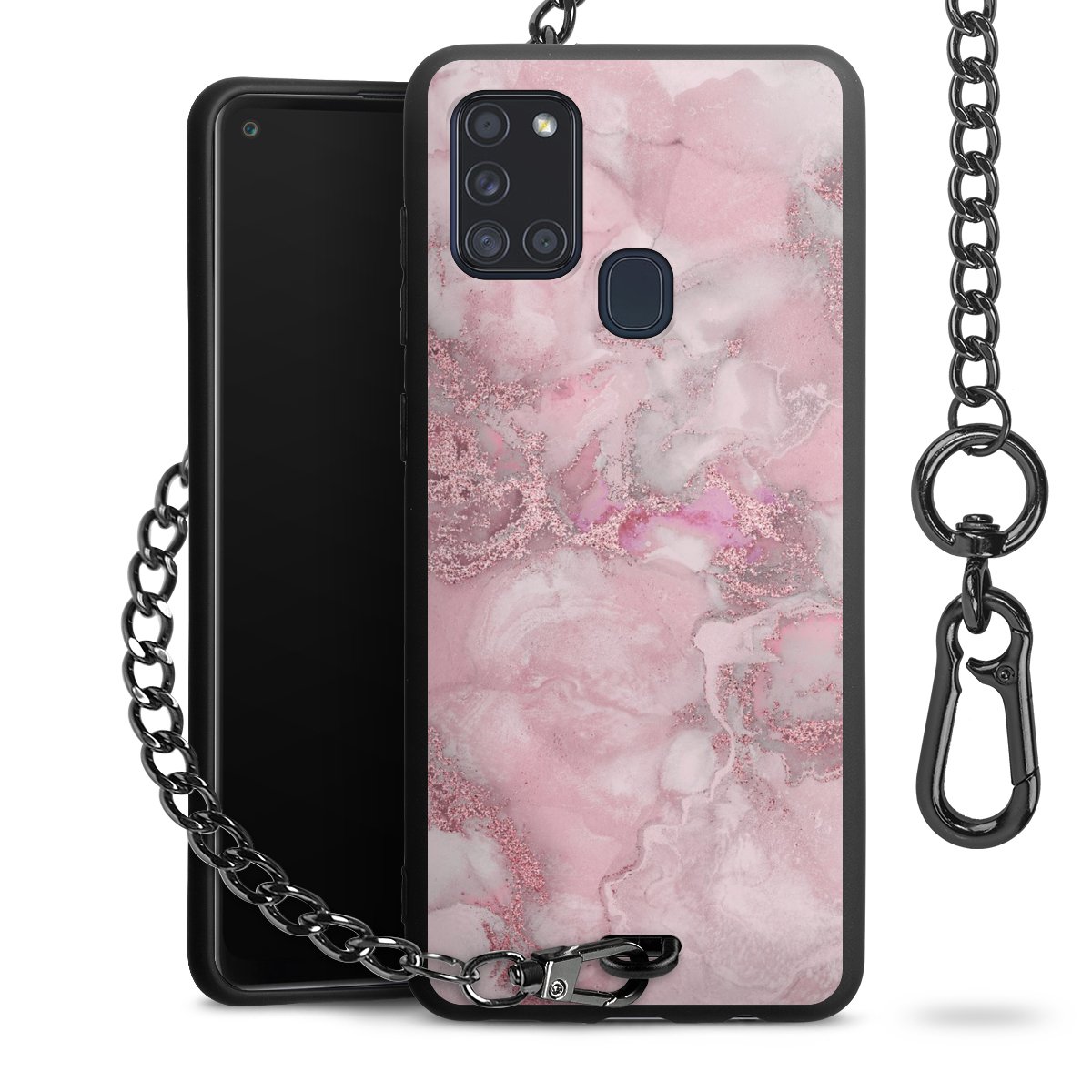 • Mattschwarze Handyhülle mit Metallkette