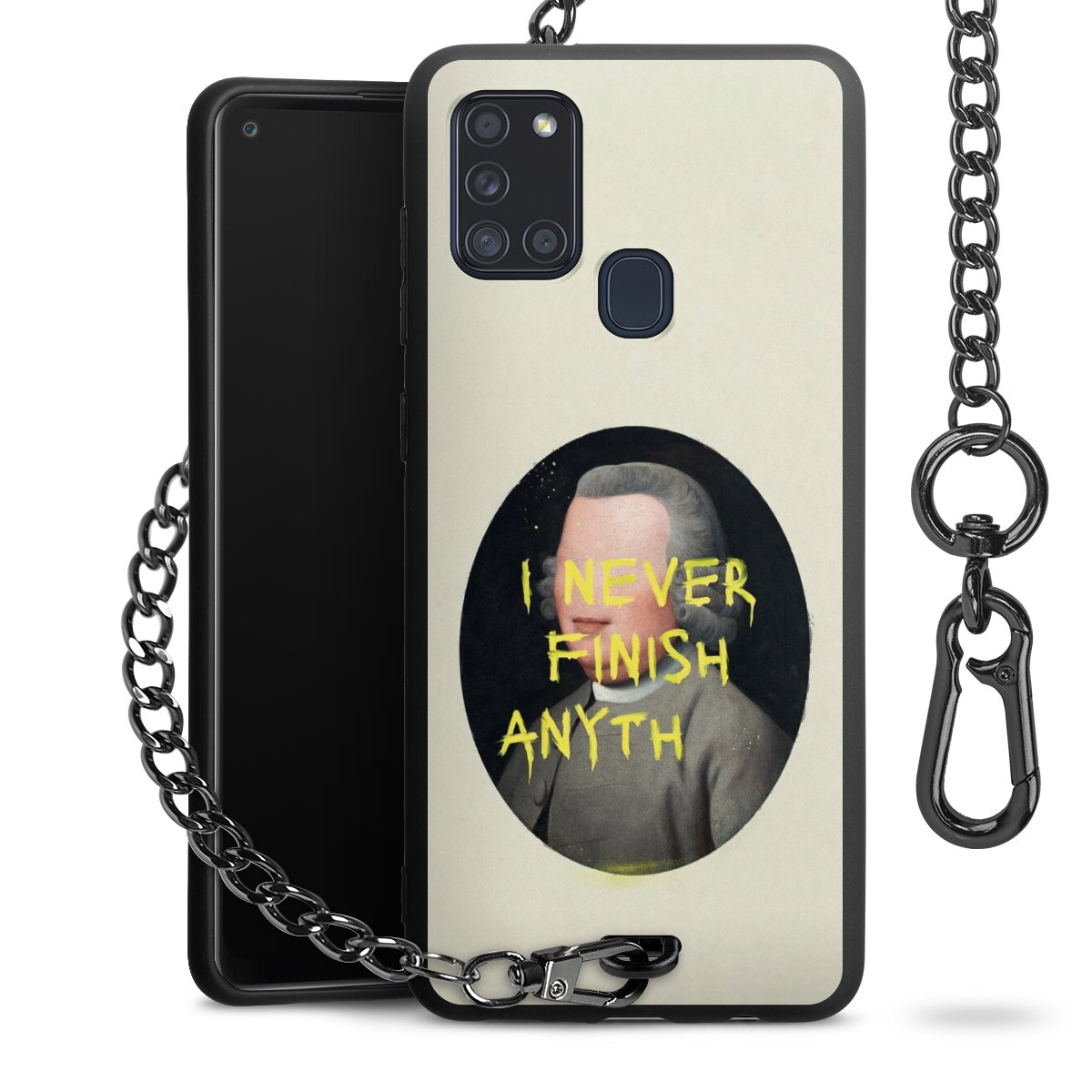 • Mattschwarze Handyhülle mit Metallkette