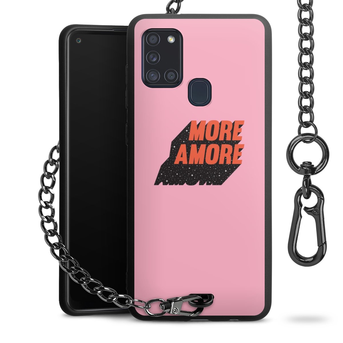 • Mattschwarze Handyhülle mit Metallkette