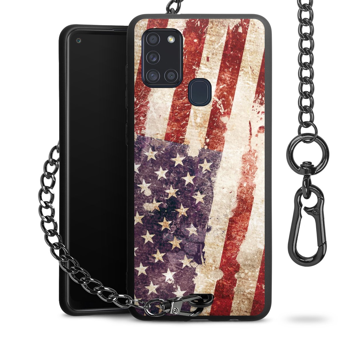 Die mattschwarze Silikon-Handyhülle besteht aus robustem TPU (thermoplastisches Polyurethan). Sie ist flexibel und schützt Dein Smartphone vor Stößen und Kratzern. Die Kette sowie der Karabinerhaken sind aus Metall in Gunmetal-Optik gefertigt. Für dieses Produkt kommen ausschließlich TÜV-geprüfte Materialien zum Einsatz.
