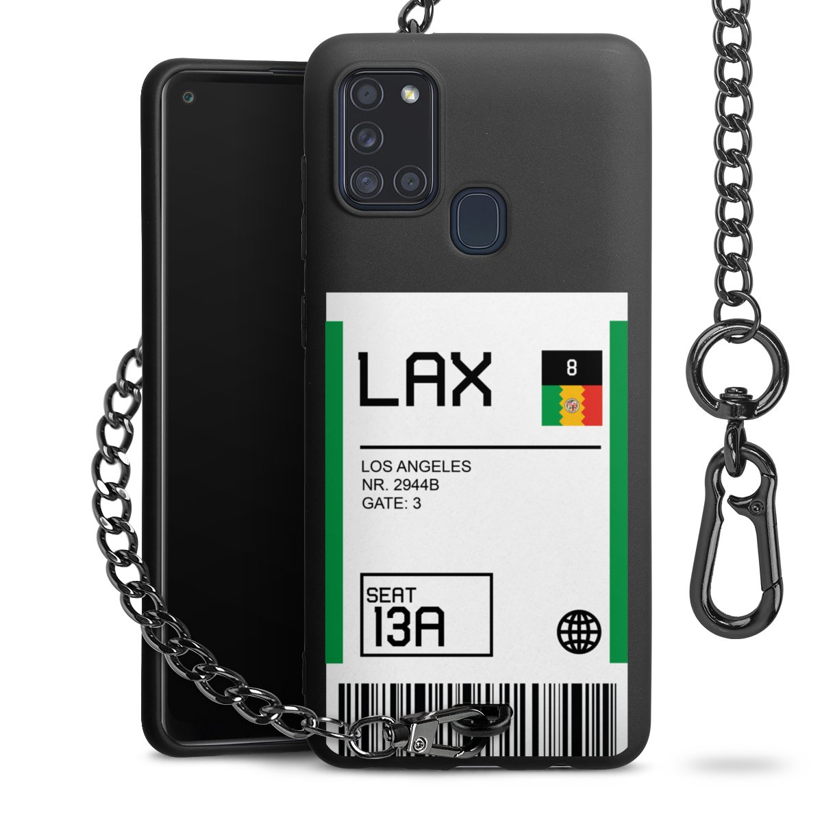 • Mattschwarze Handyhülle mit Metallkette