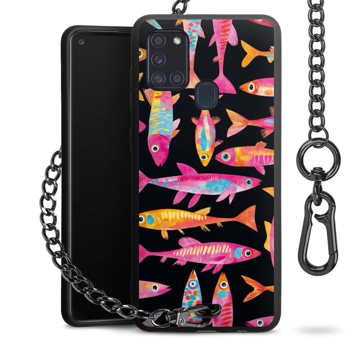• Mattschwarze Handyhülle mit Metallkette
