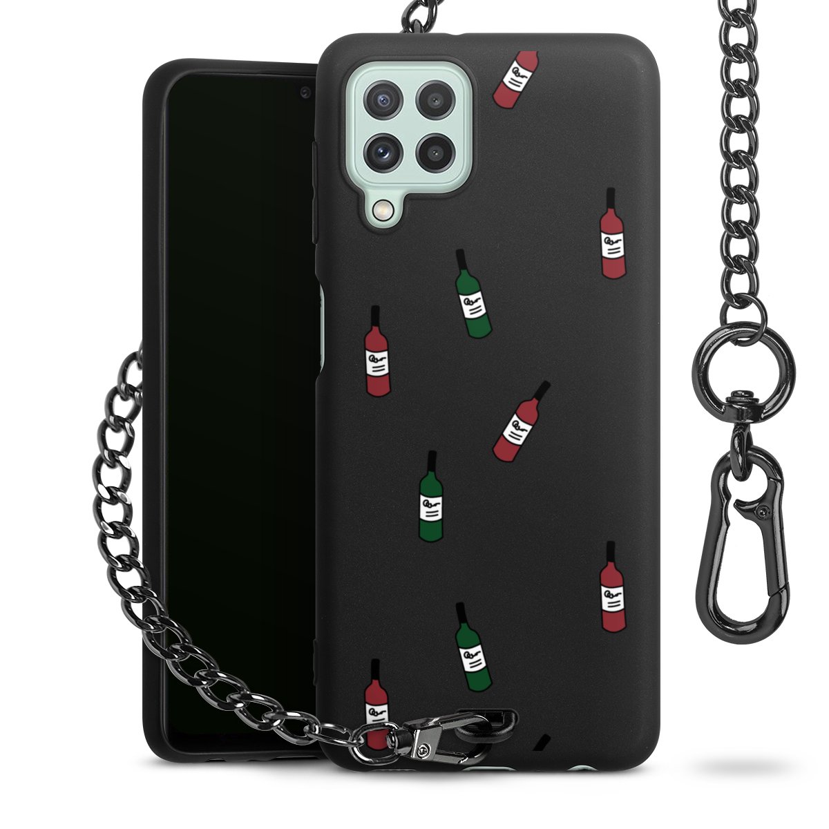 Die mattschwarze Silikon-Handyhülle besteht aus robustem TPU (thermoplastisches Polyurethan). Sie ist flexibel und schützt Dein Smartphone vor Stößen und Kratzern. Die Kette sowie der Karabinerhaken sind aus Metall in Gunmetal-Optik gefertigt. Für dieses Produkt kommen ausschließlich TÜV-geprüfte Materialien zum Einsatz.