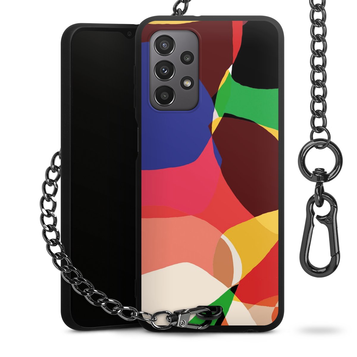 • Mattschwarze Handyhülle mit Metallkette