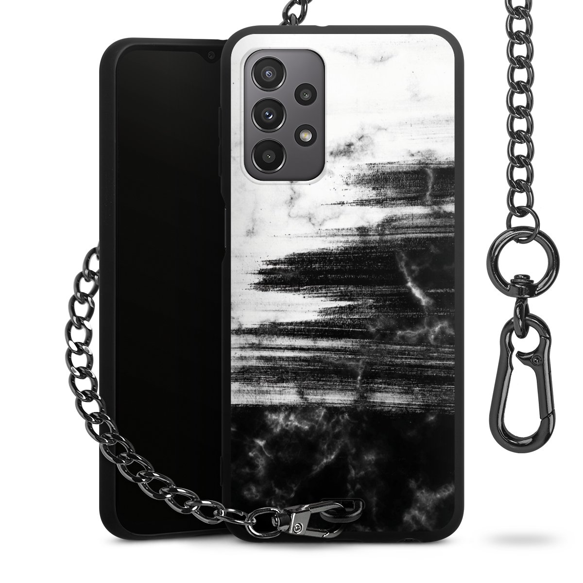 • Mattschwarze Handyhülle mit Metallkette