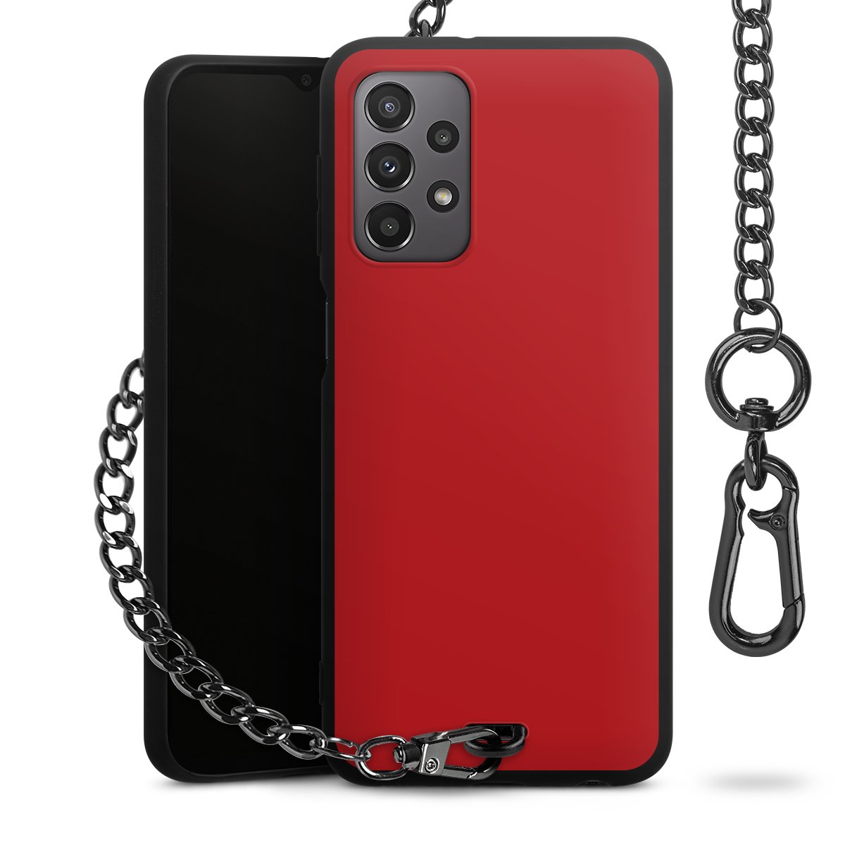 - Mattschwarze Handyhülle mit Metallkette