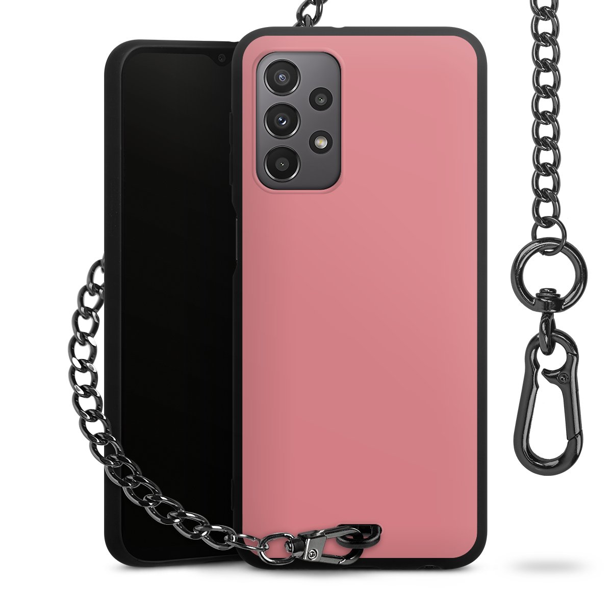 - Mattschwarze Handyhülle mit Metallkette