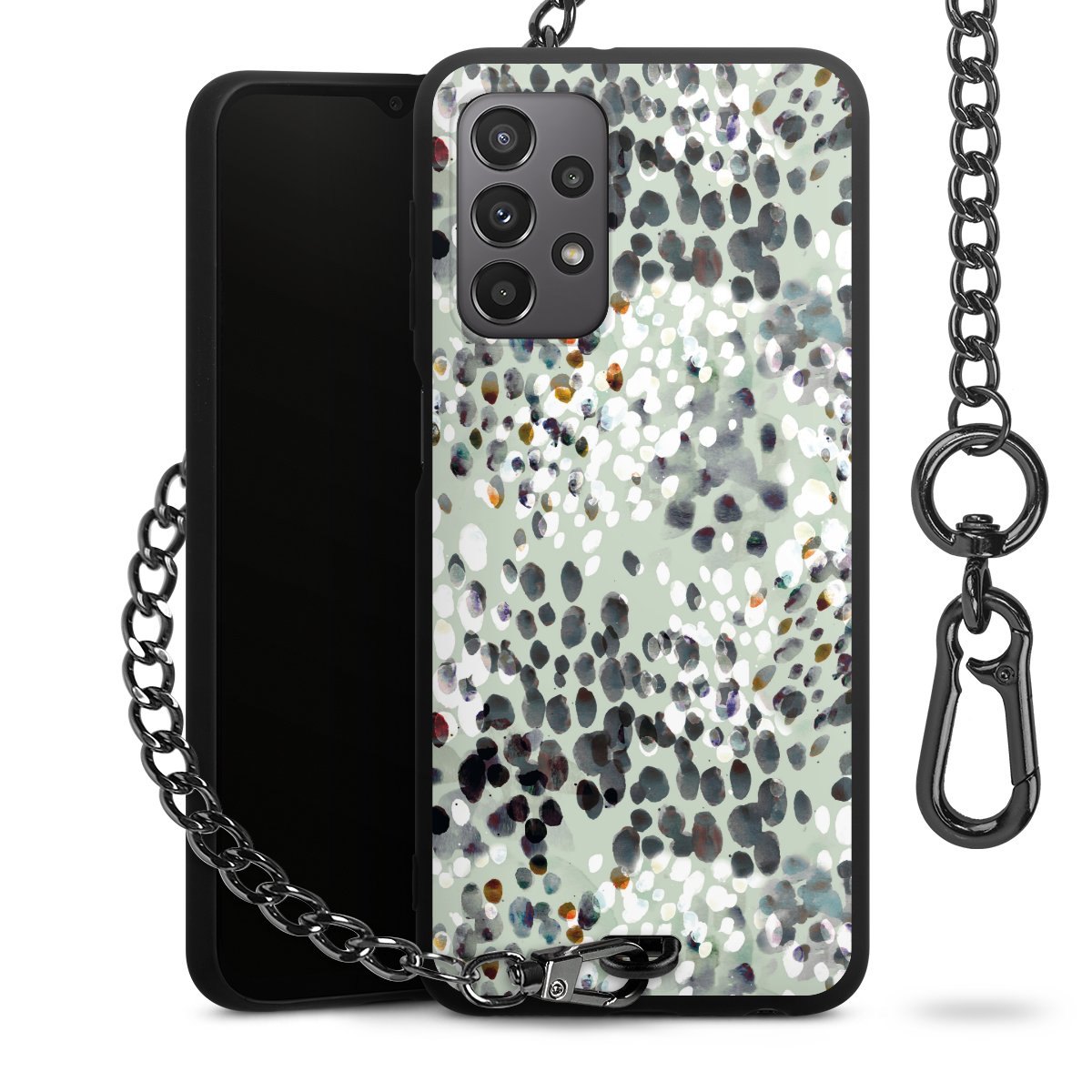 • Mattschwarze Handyhülle mit Metallkette