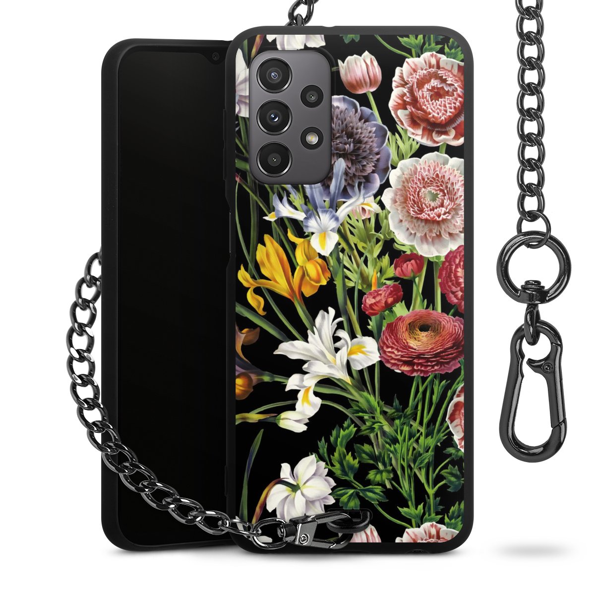 • Mattschwarze Handyhülle mit Metallkette