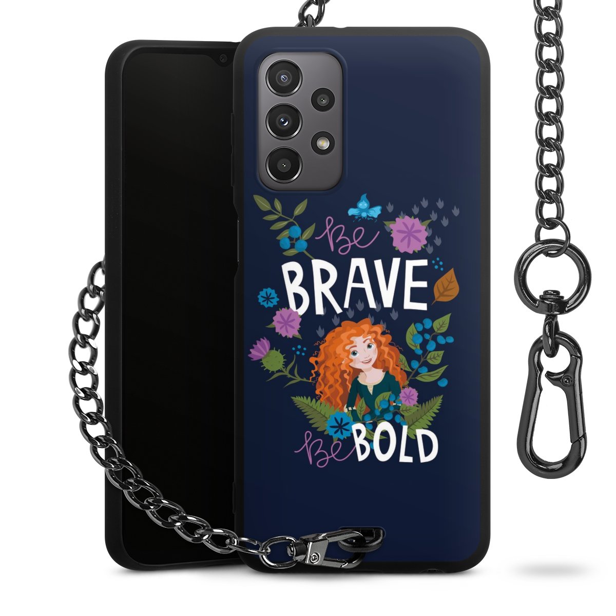 • Mattschwarze Handyhülle mit Metallkette