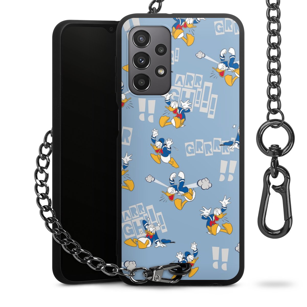 • Mattschwarze Handyhülle mit Metallkette