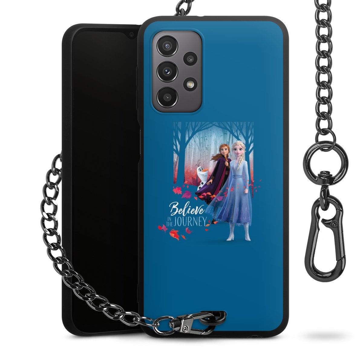 • Mattschwarze Handyhülle mit Metallkette