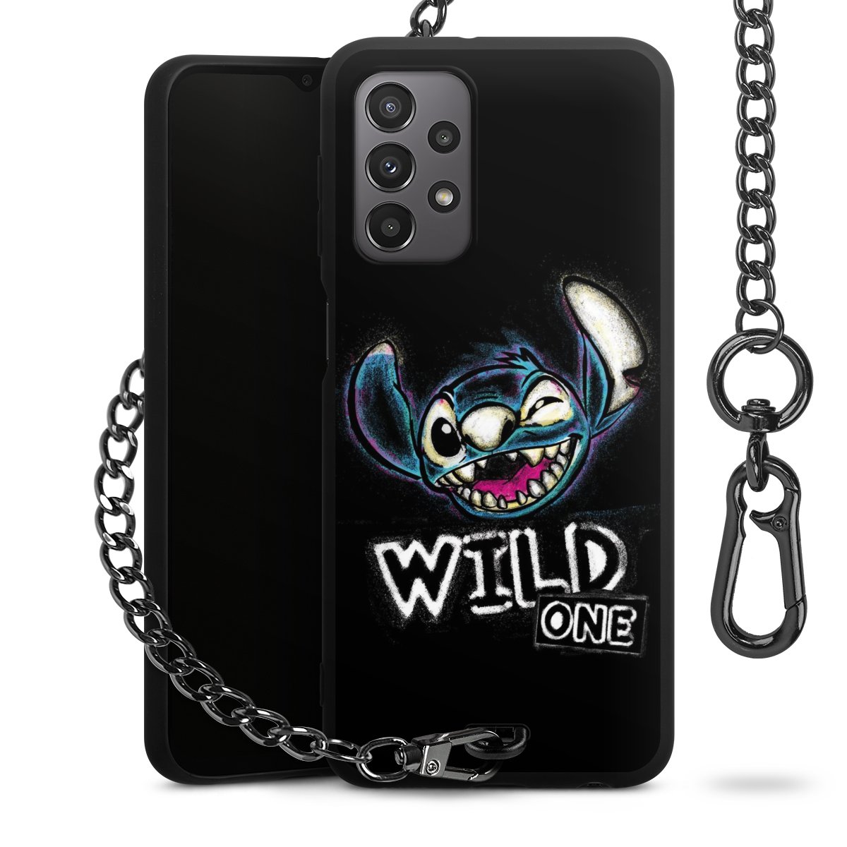 Die Handyhülle verfügt über eine mittig am unteren Rand platzierte Öse, an der die Metallkette stabil befestigt ist. Bestelle die Hülle einfach für Dein Smartphone-Modell, dann passt sie wie angegossen und Du brauchst sie bloß einmal anzudrücken. Handy in die Tasche, Karabiner an den Hosenbund – schon kann die Party starten.