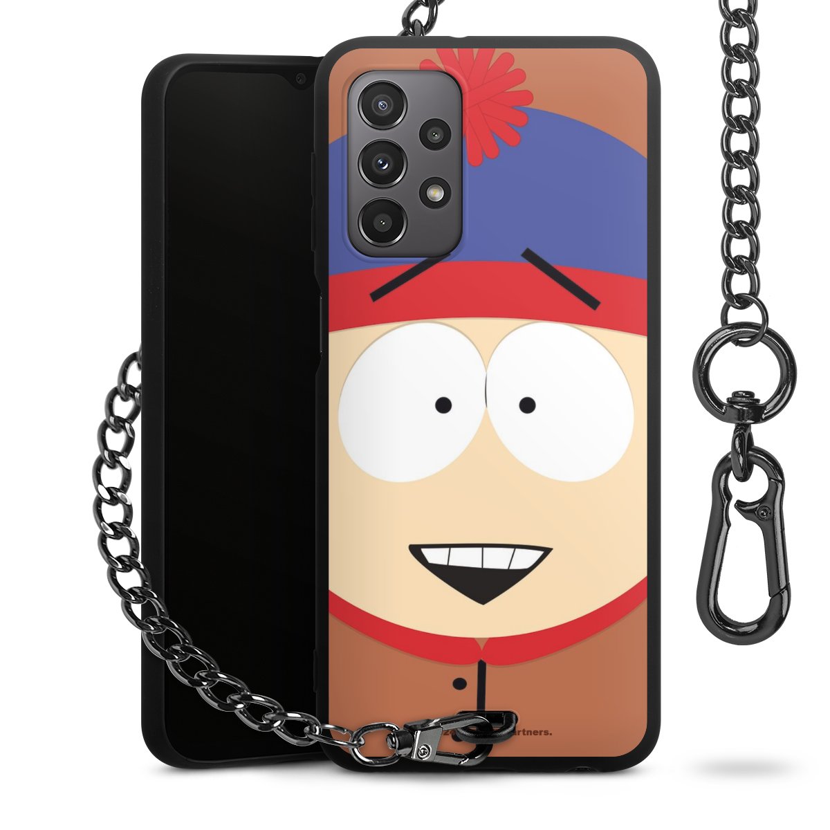 - Mattschwarze Handyhülle mit Metallkette