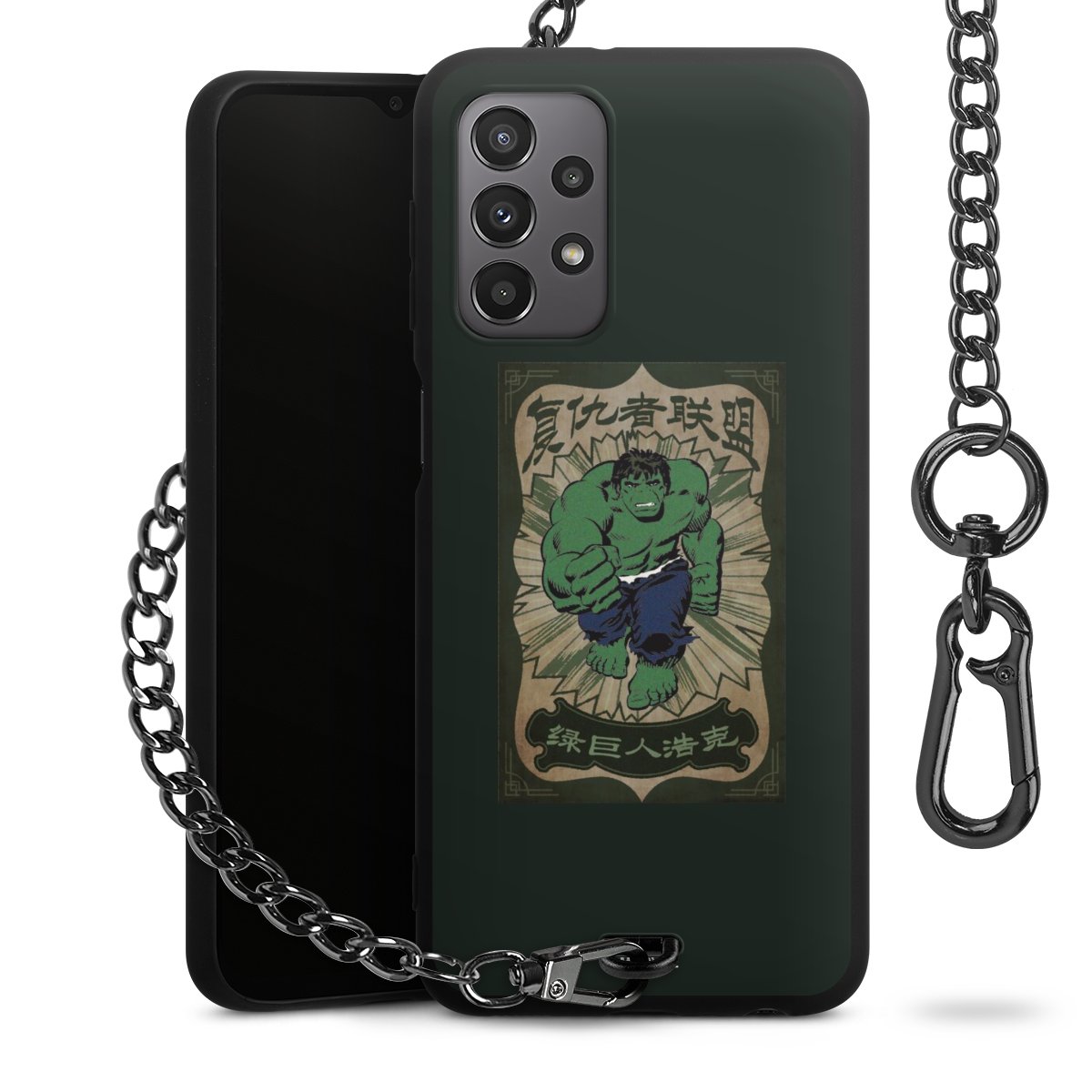 • Mattschwarze Handyhülle mit Metallkette