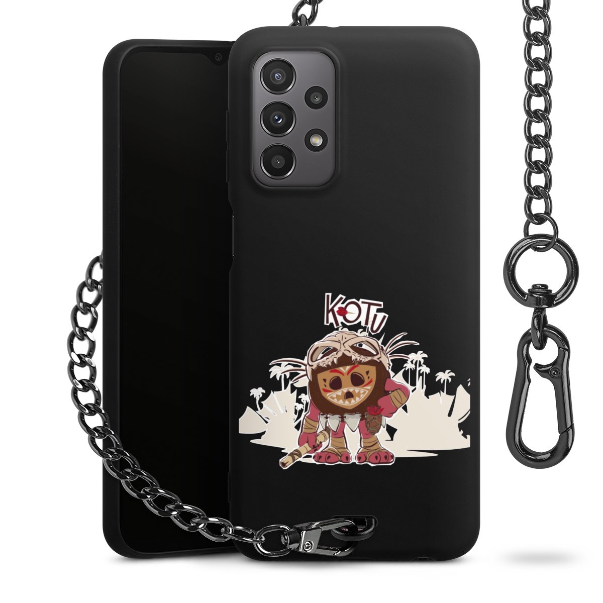 • Mattschwarze Handyhülle mit Metallkette