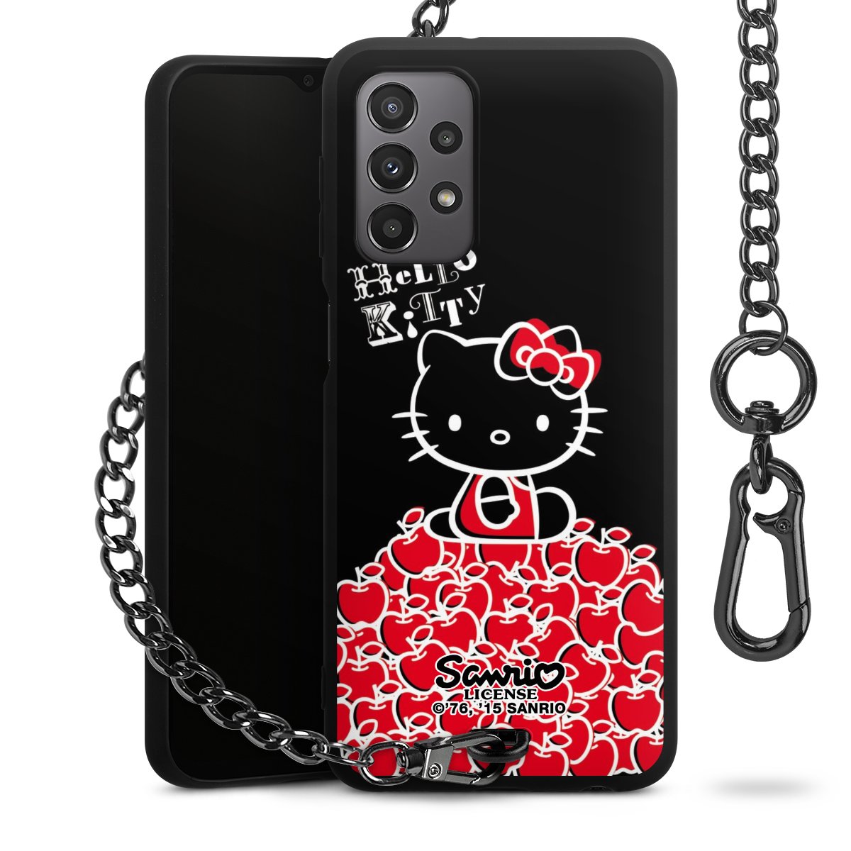 Die Handyhülle verfügt über eine mittig am unteren Rand platzierte Öse, an der die Metallkette stabil befestigt ist. Bestelle die Hülle einfach für Dein Smartphone-Modell, dann passt sie wie angegossen und Du brauchst sie bloß einmal anzudrücken. Handy in die Tasche, Karabiner an den Hosenbund – schon kann die Party starten.