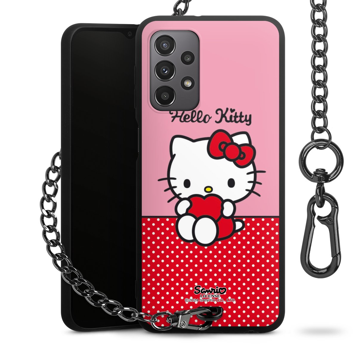 Die mattschwarze Silikon-Handyhülle besteht aus robustem TPU (thermoplastisches Polyurethan). Sie ist flexibel und schützt Dein Smartphone vor Stößen und Kratzern. Die Kette sowie der Karabinerhaken sind aus Metall in Gunmetal-Optik gefertigt. Für dieses Produkt kommen ausschließlich TÜV-geprüfte Materialien zum Einsatz.