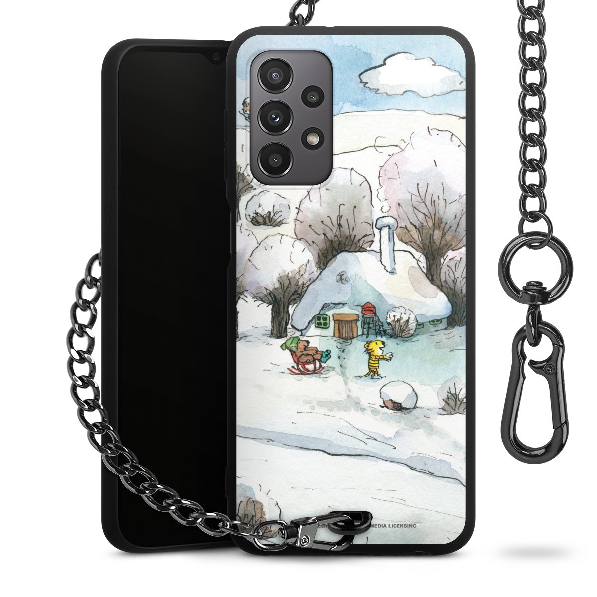 • Mattschwarze Handyhülle mit Metallkette