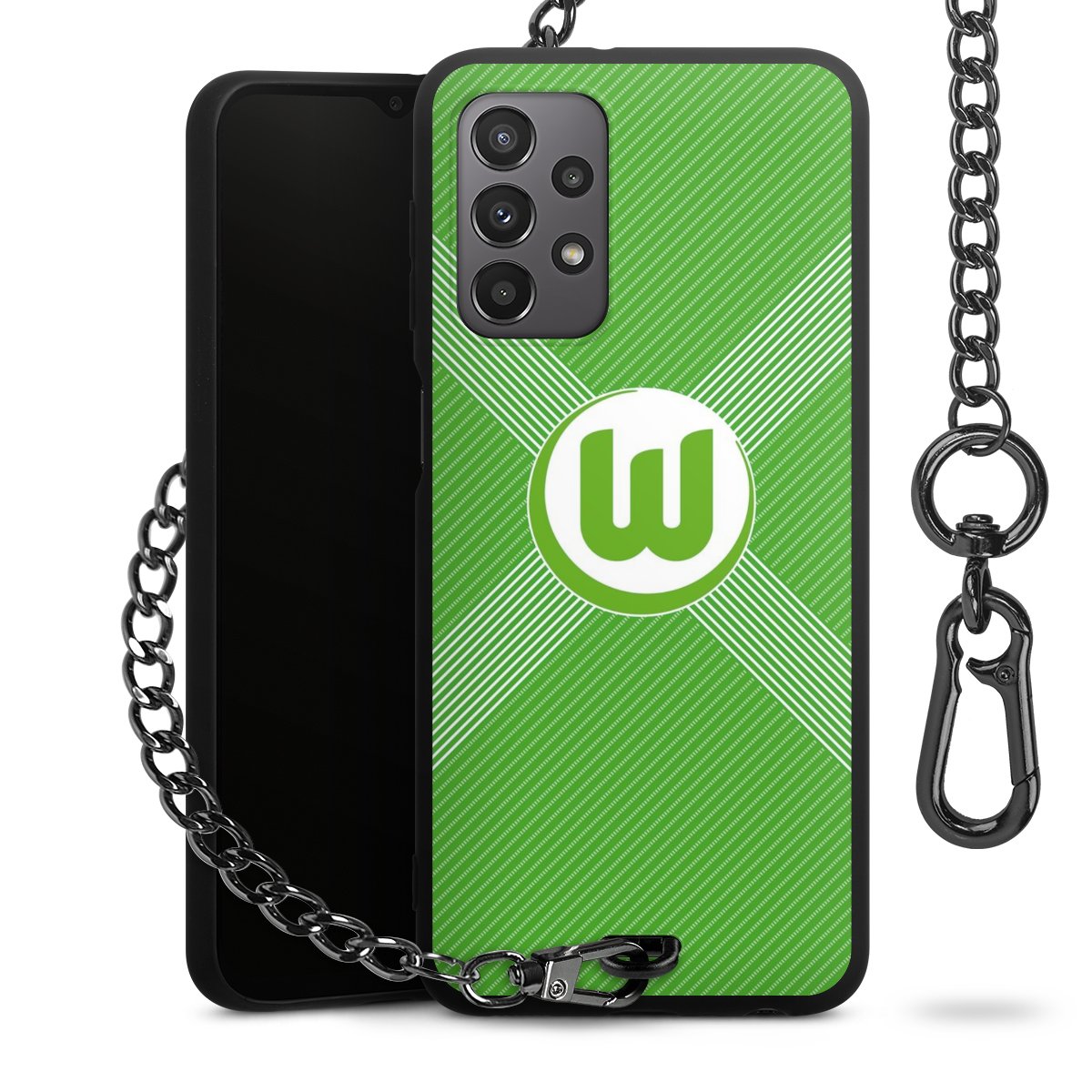 • Mattschwarze Handyhülle mit Metallkette