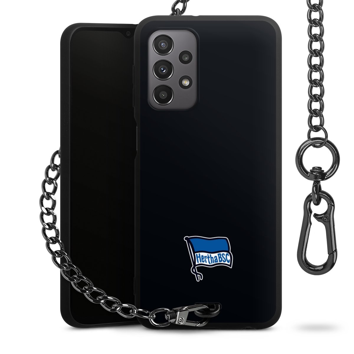 • Mattschwarze Handyhülle mit Metallkette