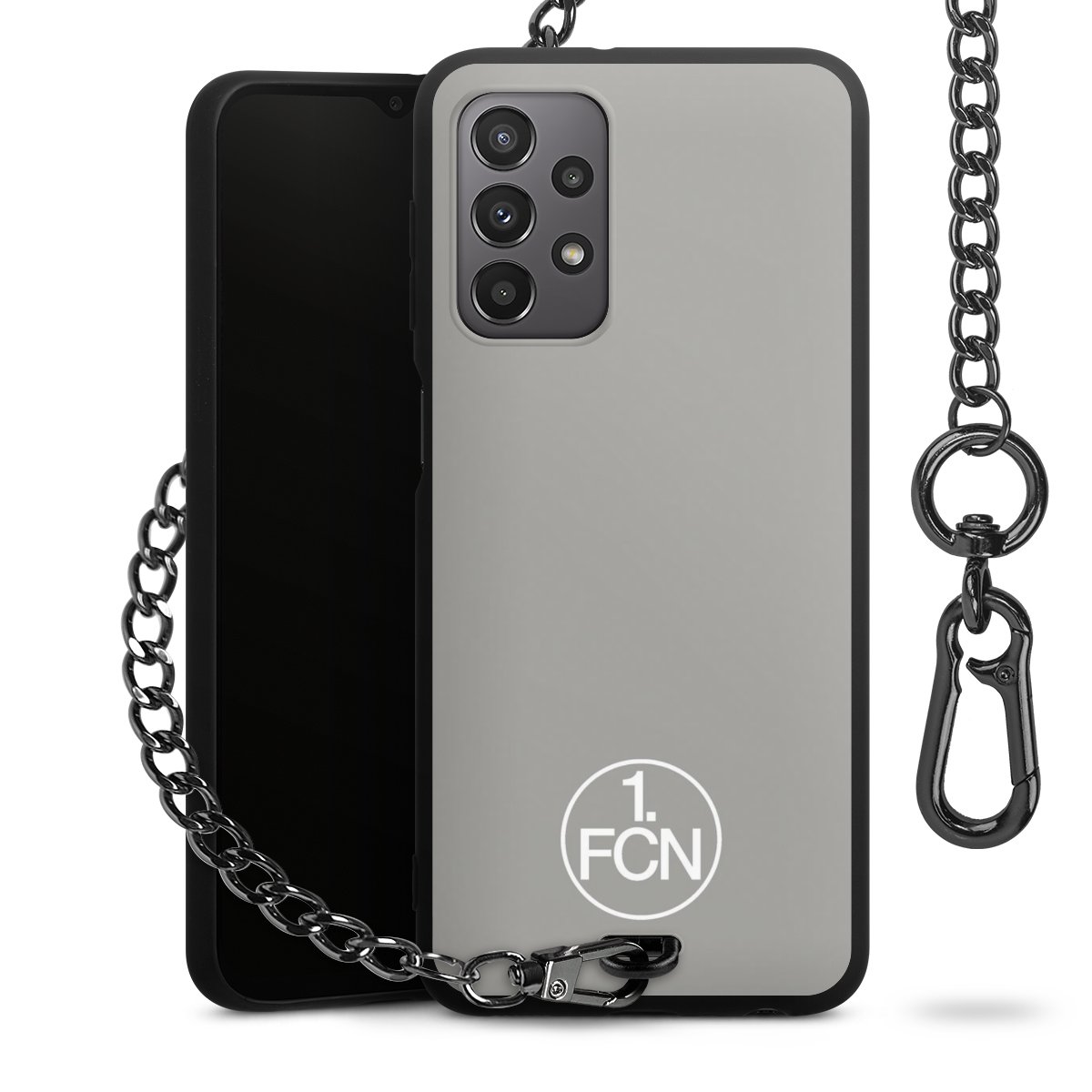 • Mattschwarze Handyhülle mit Metallkette