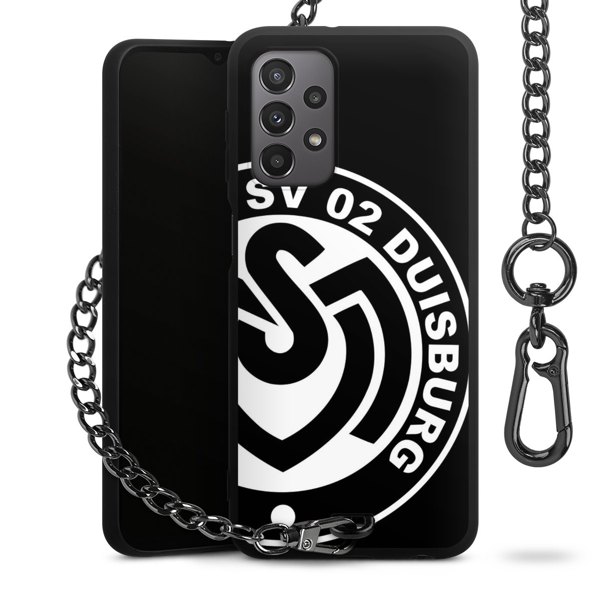 • Mattschwarze Handyhülle mit Metallkette