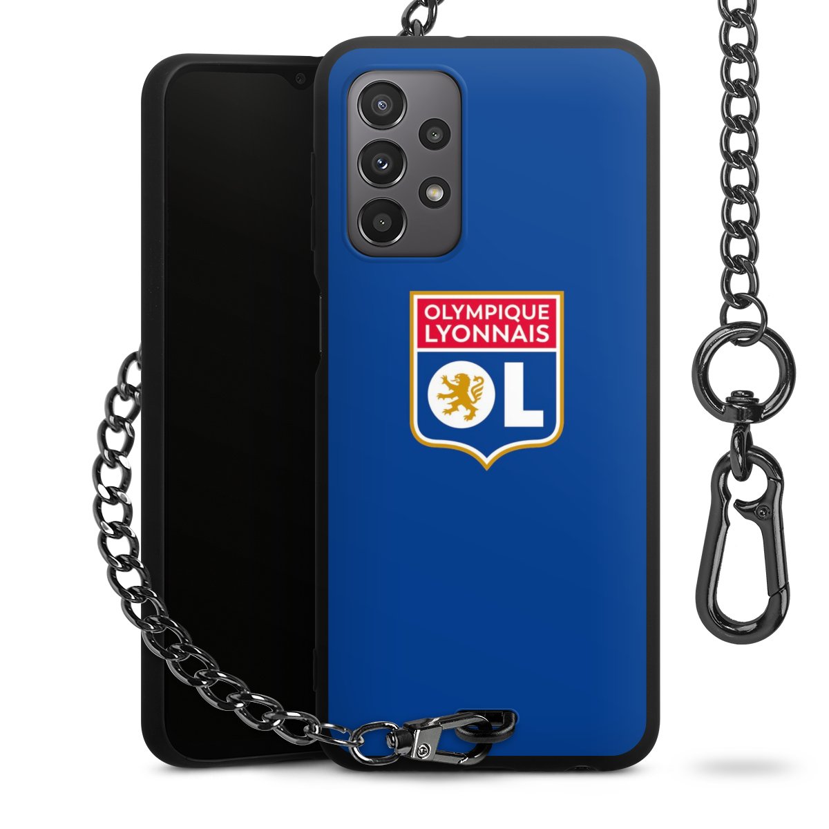 • Mattschwarze Handyhülle mit Metallkette