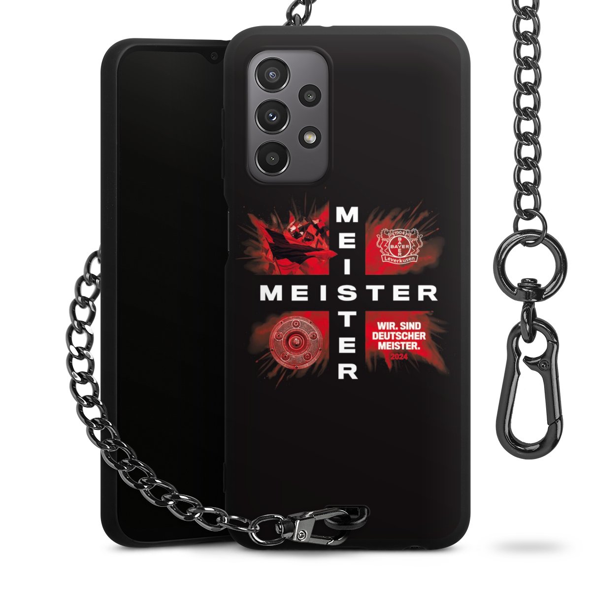 • Mattschwarze Handyhülle mit Metallkette