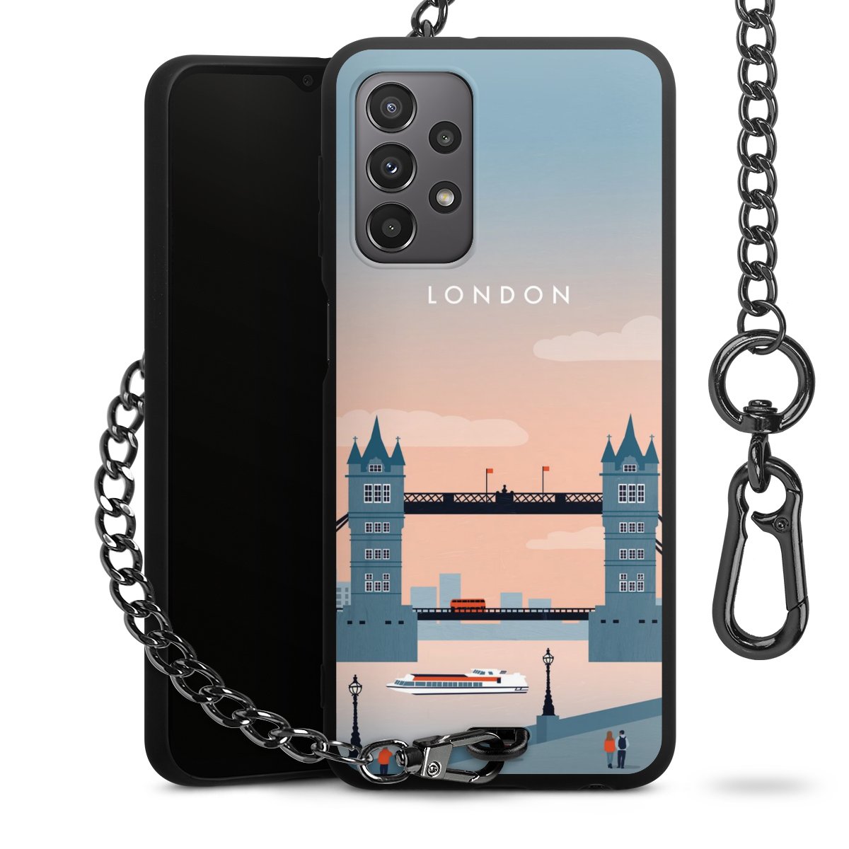 • Mattschwarze Handyhülle mit Metallkette