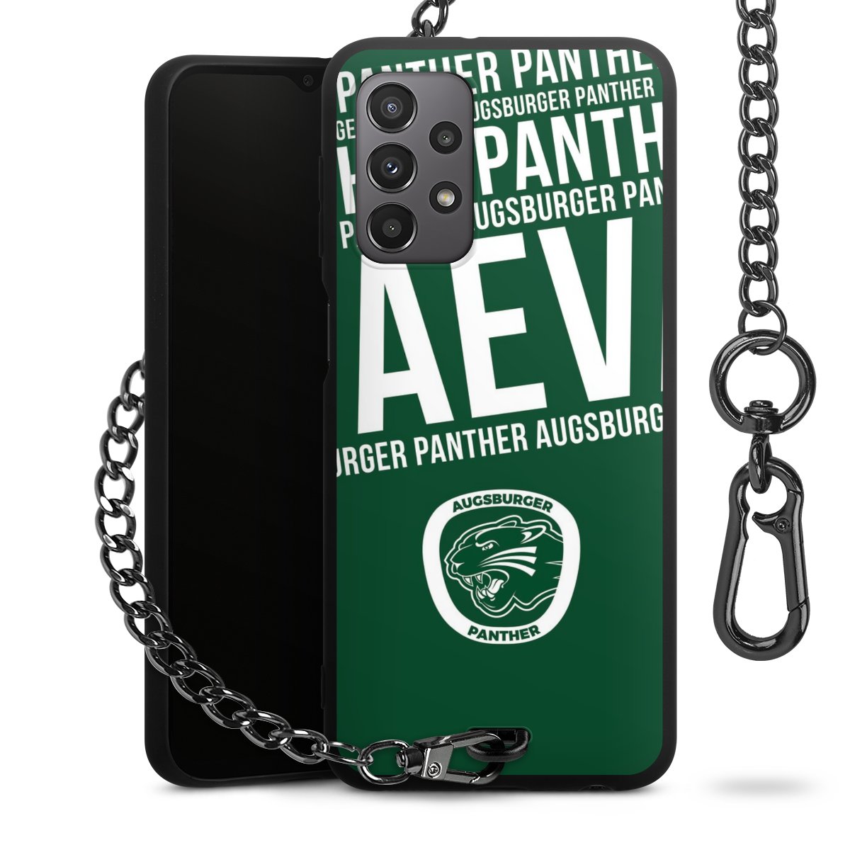 • Mattschwarze Handyhülle mit Metallkette