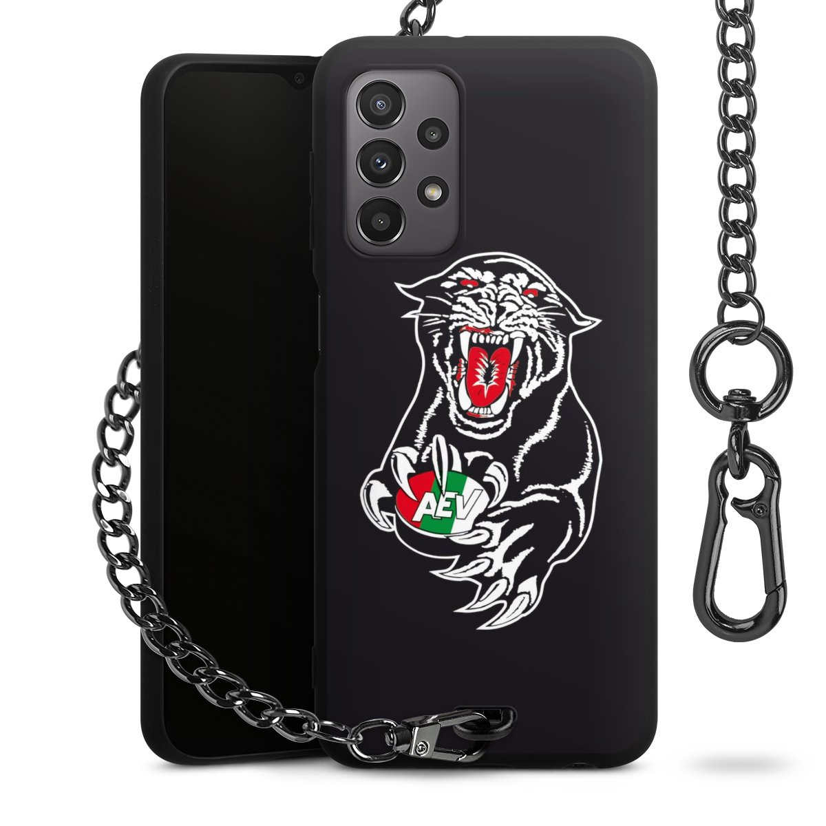 • Mattschwarze Handyhülle mit Metallkette
