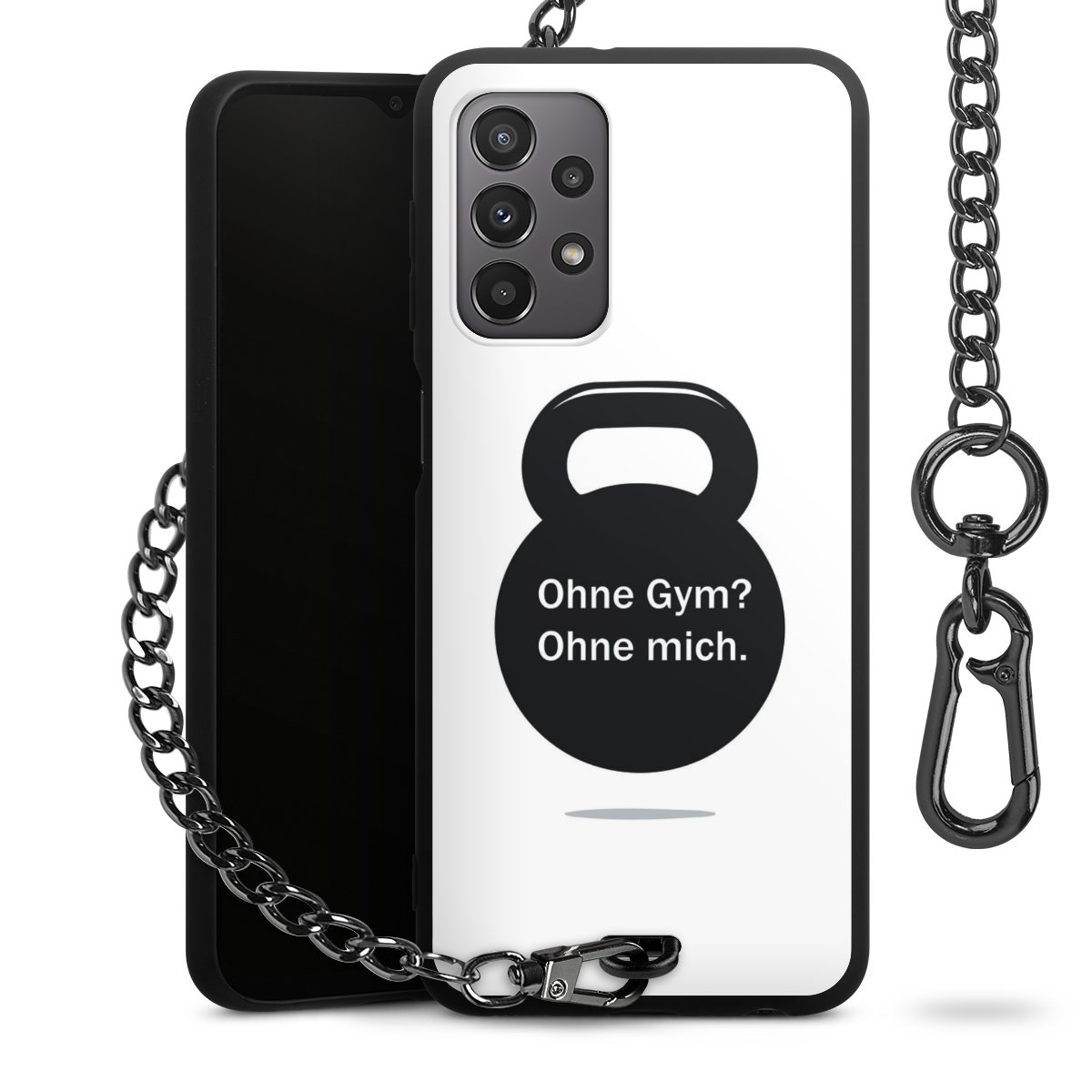 • Mattschwarze Handyhülle mit Metallkette