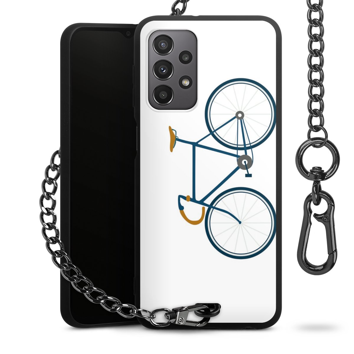 - Mattschwarze Handyhülle mit Metallkette