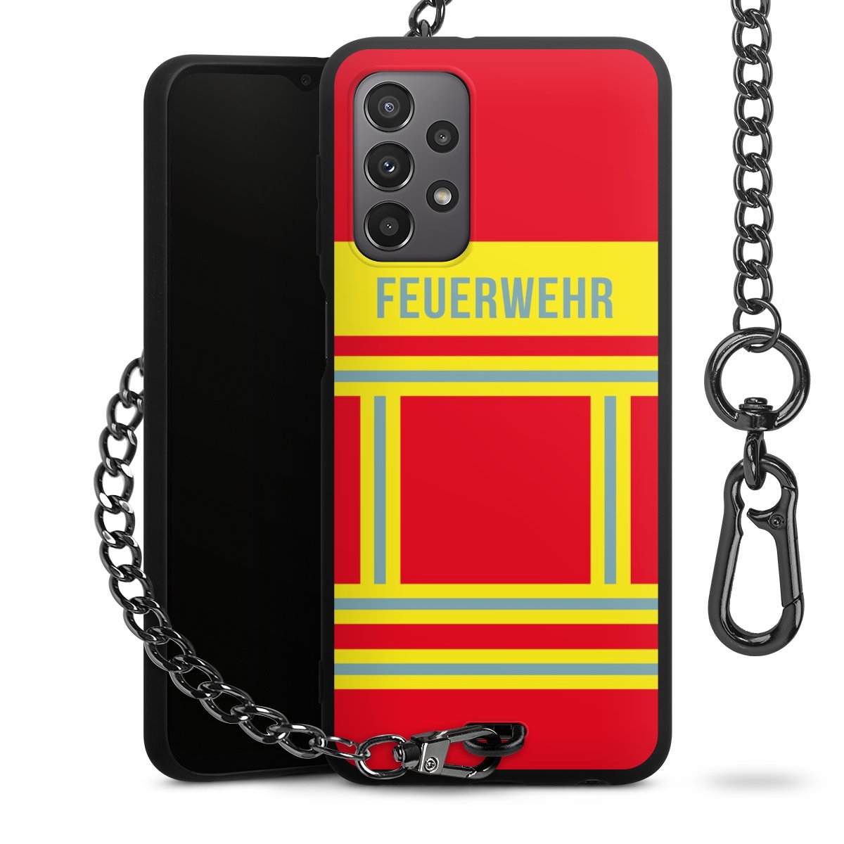 - Mattschwarze Handyhülle mit Metallkette