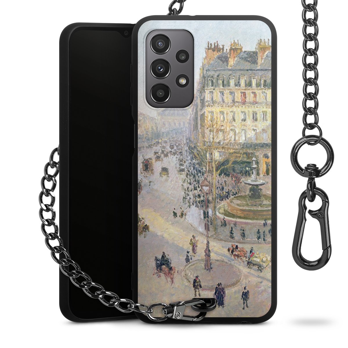 • Mattschwarze Handyhülle mit Metallkette