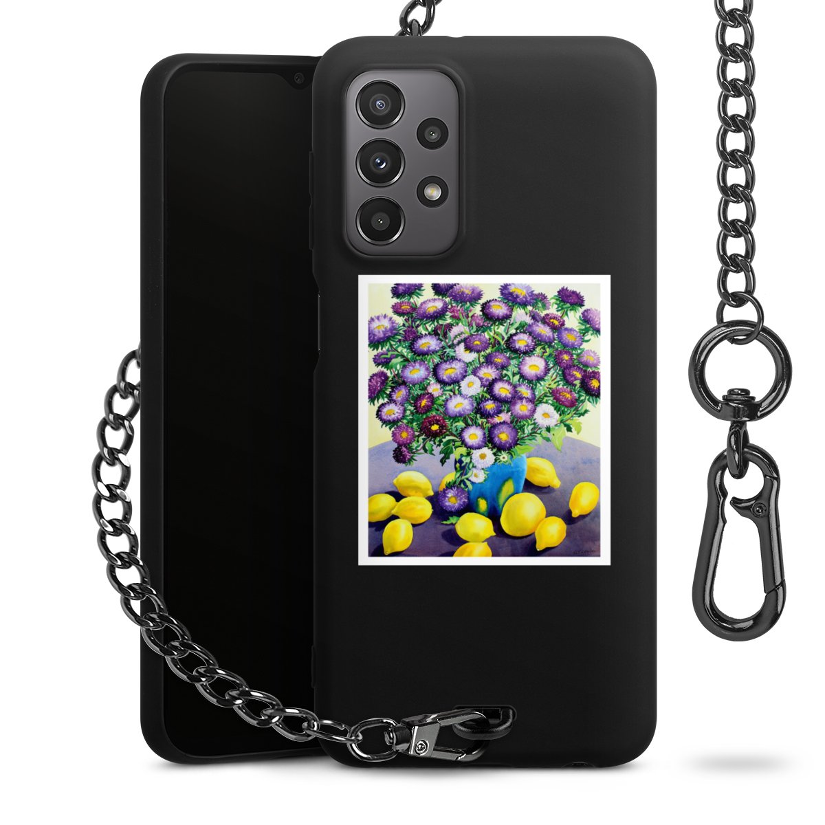 - Mattschwarze Handyhülle mit Metallkette