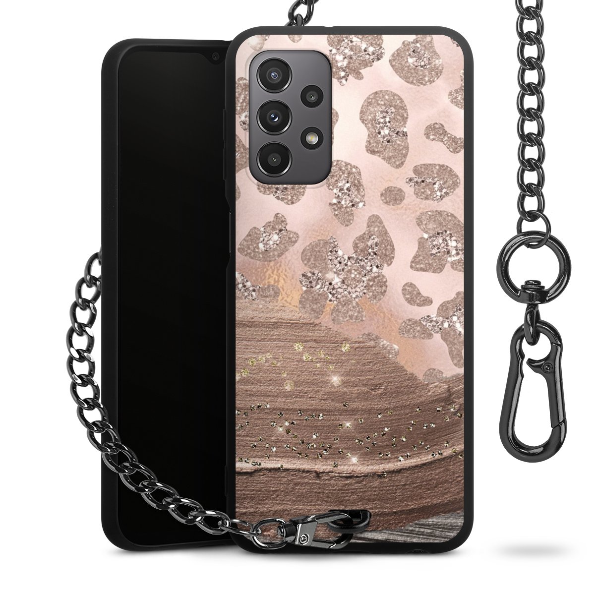 • Mattschwarze Handyhülle mit Metallkette