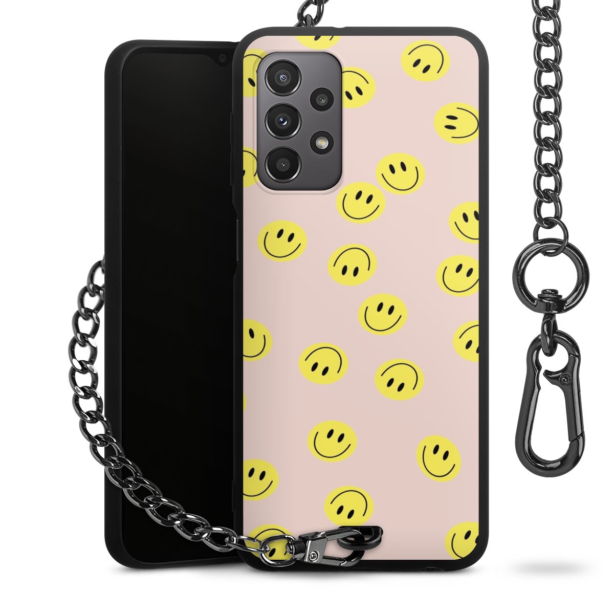 • Mattschwarze Handyhülle mit Metallkette