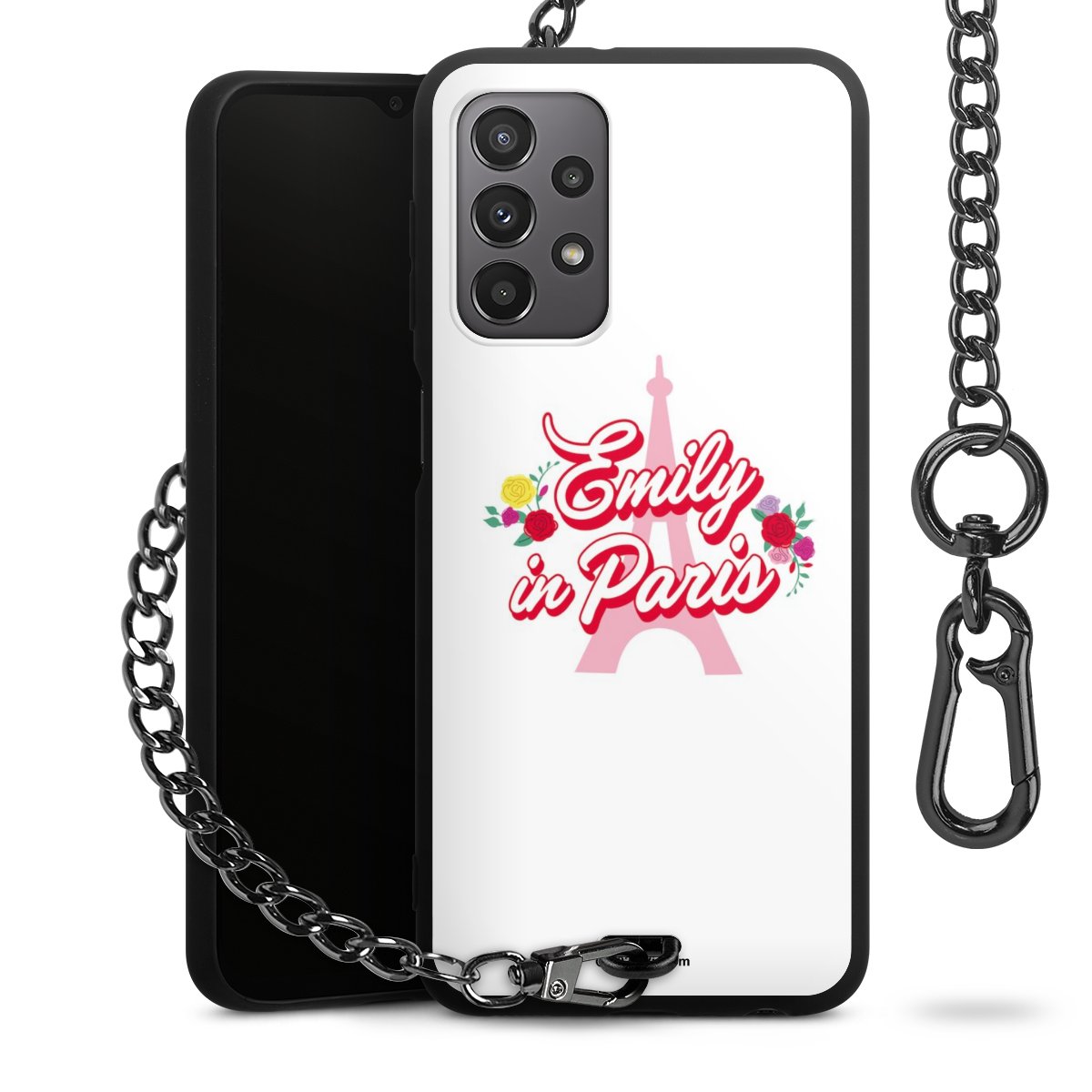 - Mattschwarze Handyhülle mit Metallkette