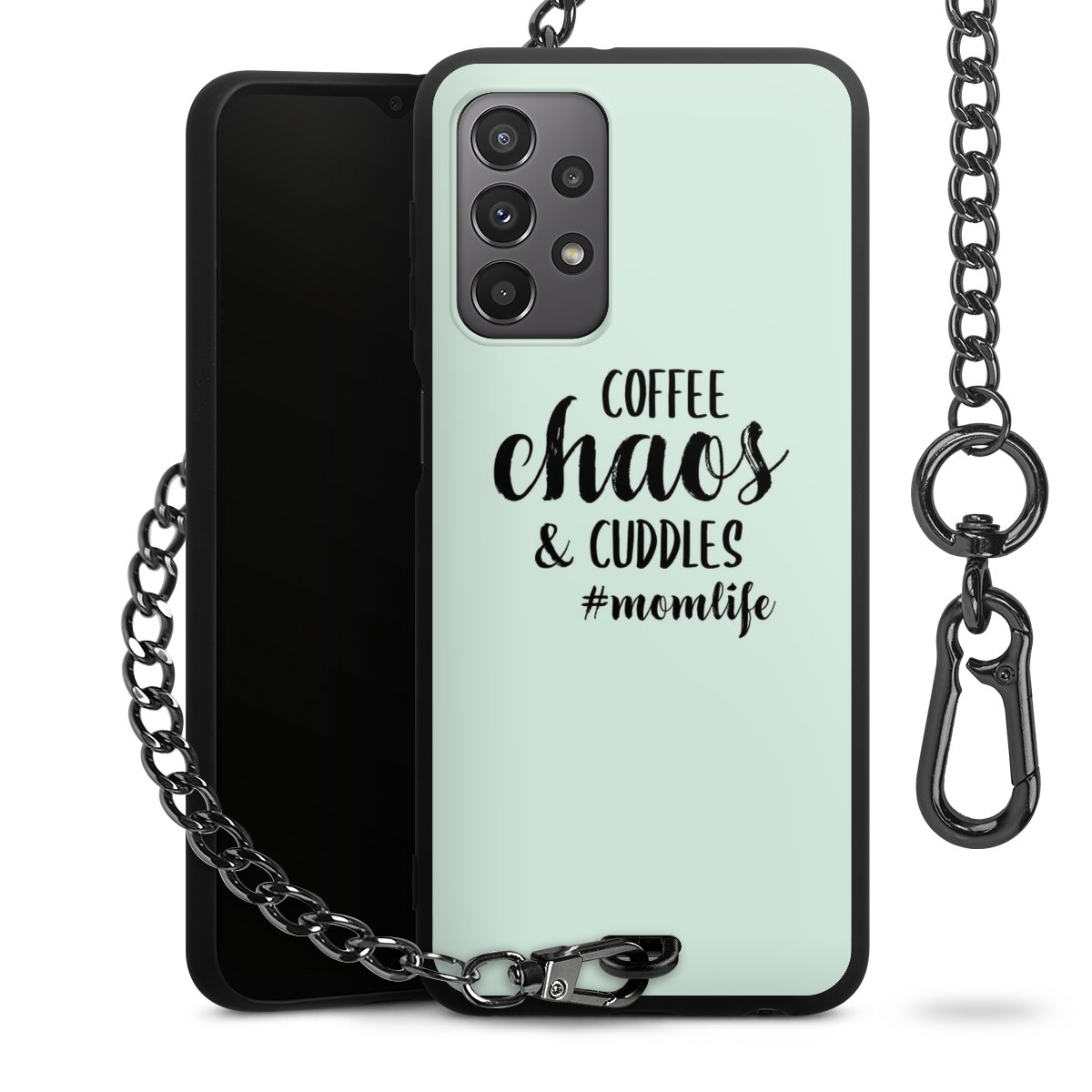 - Mattschwarze Handyhülle mit Metallkette