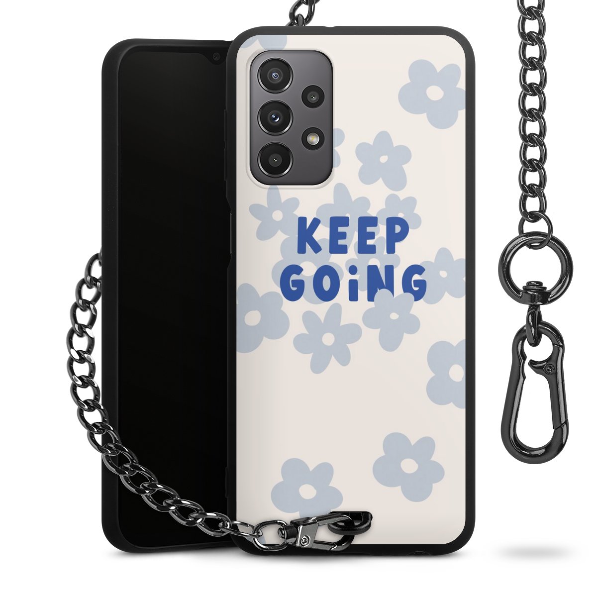 • Mattschwarze Handyhülle mit Metallkette