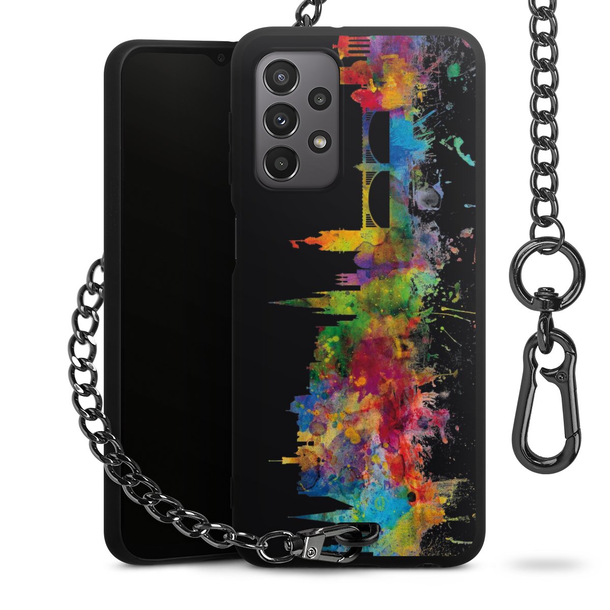 • Mattschwarze Handyhülle mit Metallkette