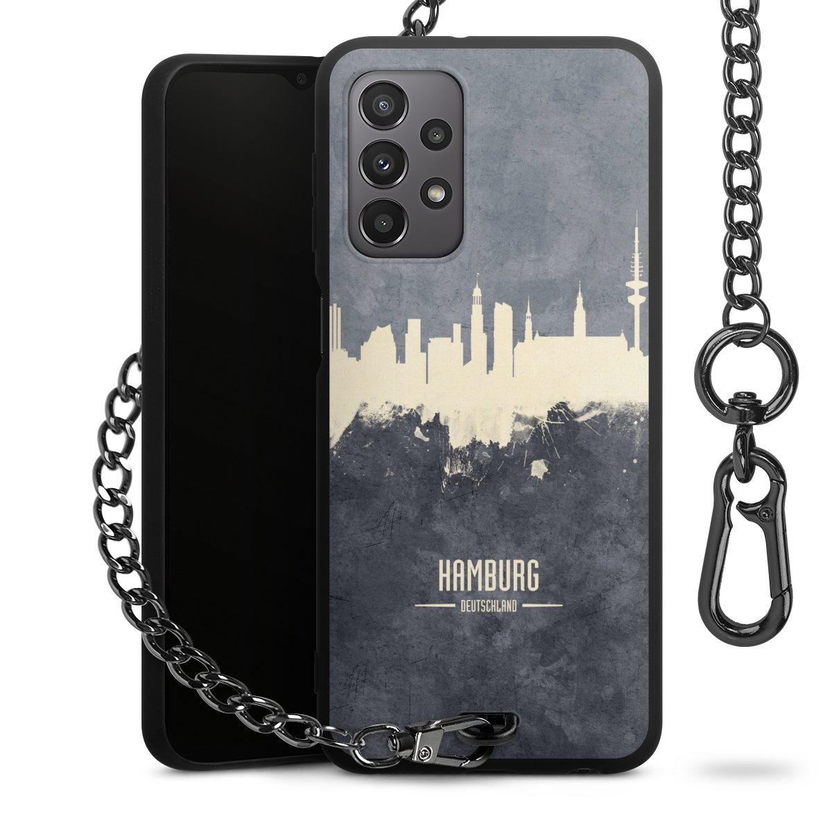 • Mattschwarze Handyhülle mit Metallkette