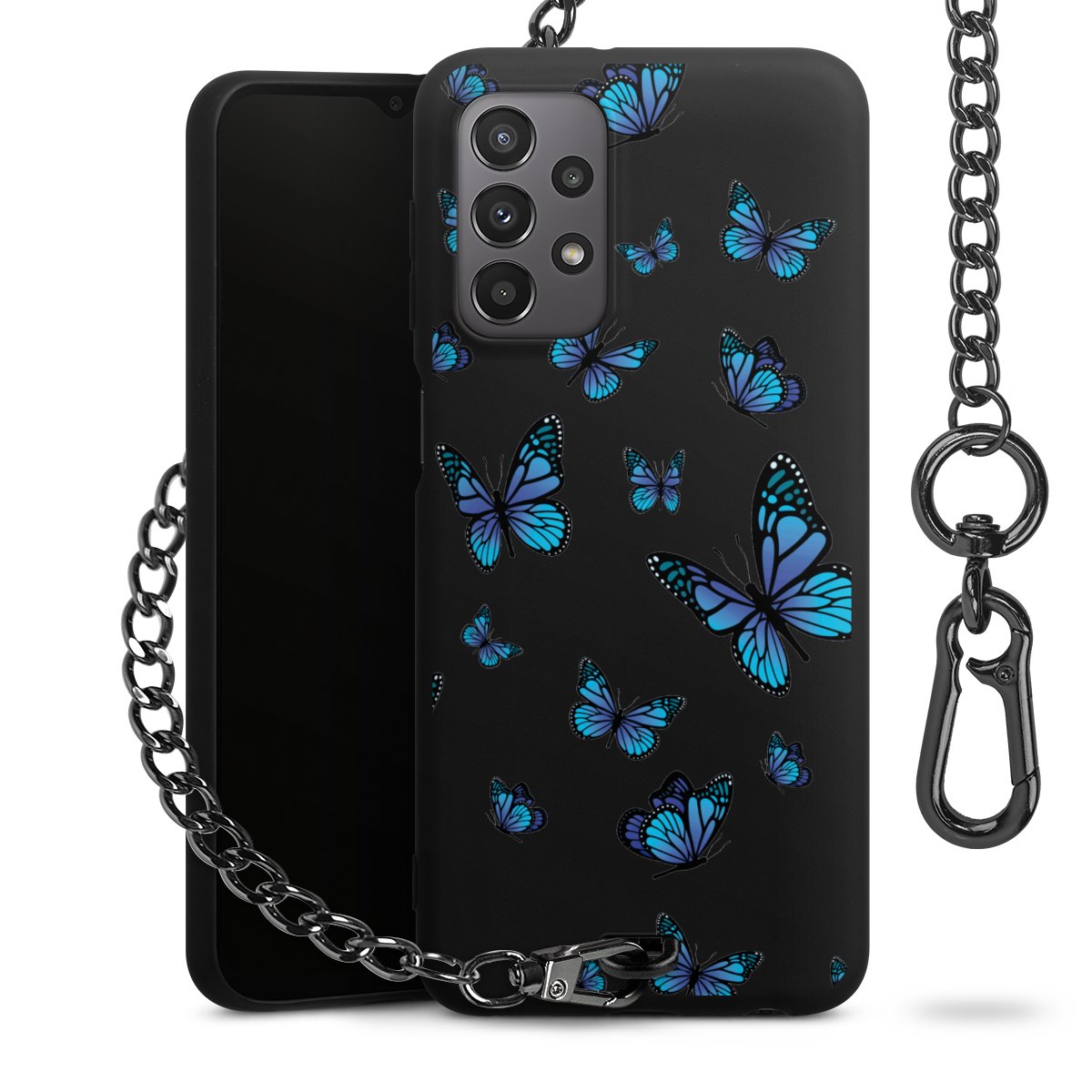 - Mattschwarze Handyhülle mit Metallkette